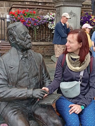 Nous nous rappelons que Guernesey est aussi la terre d’exil de Victor Hugo. Nous ne pouvons visiter sa maison de Hauteville, faute de temps, mais nous voyons sa trace ou son évocation par exemple sa statue devant les halles où nous nous arrêtons pour quelques photos. Pendant son exil d’une quinzaine d’années, Victor Hugo écrivit de grandes œuvres comme Les misérables ou encore Les travailleurs de la Mer.
